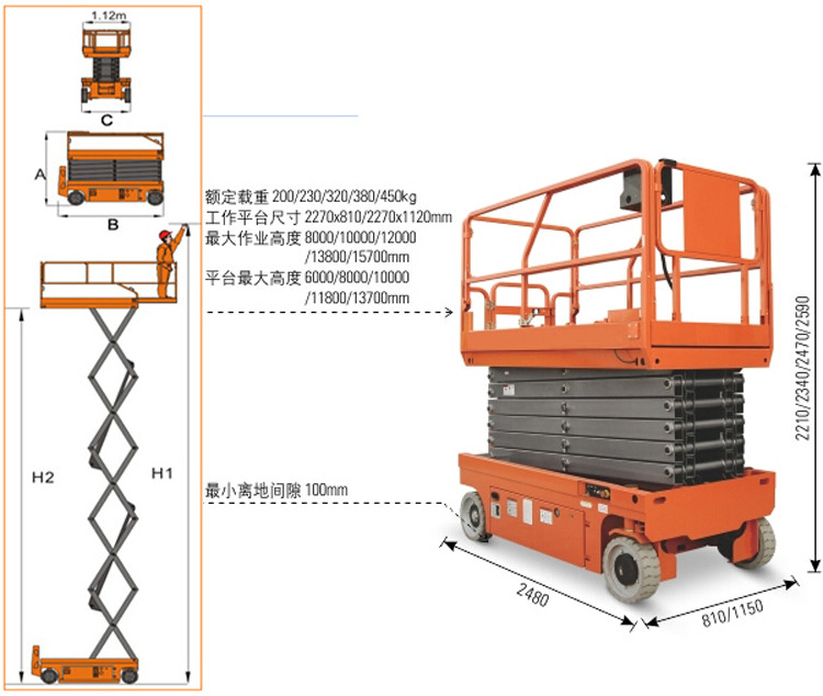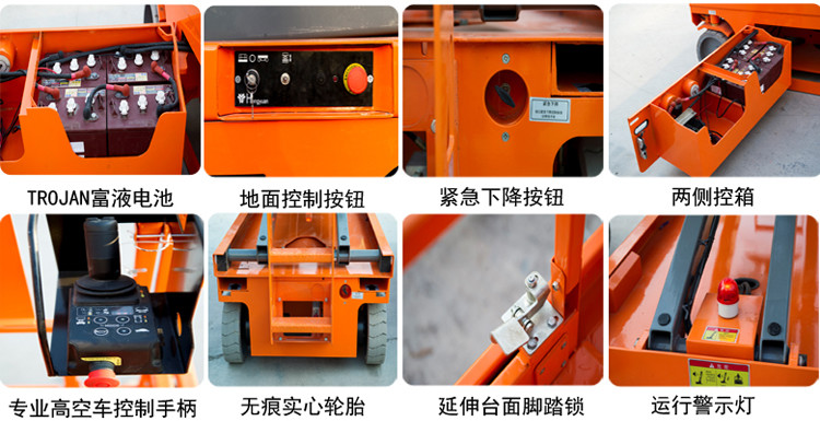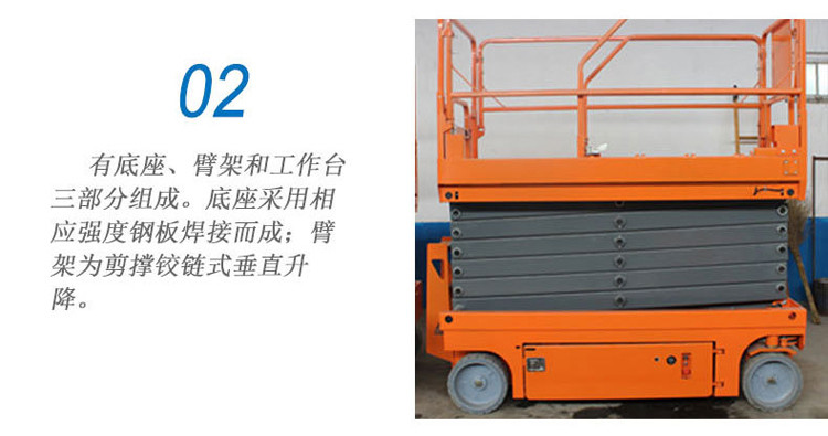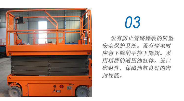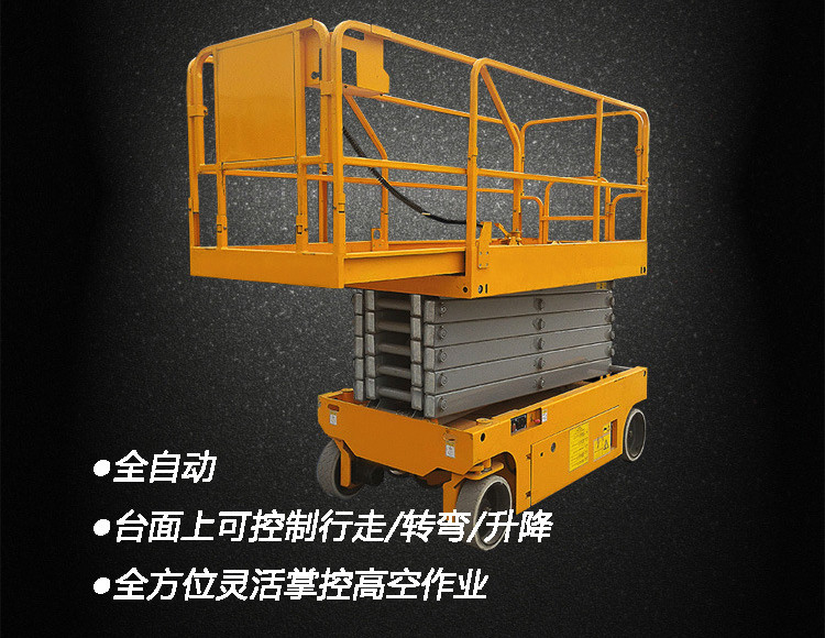 全自行式升降平臺工作平臺可移出,擴(kuò)大了工作范圍,可滿足部分用戶的特殊需要。