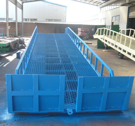 移動(dòng)式登車橋是與叉車配合使用的貨物裝卸專用輔助設(shè)備,有了它叉車能直接從地面駛?cè)肫囓噹麅?nèi)部進(jìn)行批量裝卸作業(yè)。產(chǎn)品采用人工液壓動(dòng)力,不需接動(dòng)力電源。只需單人操作,即可實(shí)現(xiàn)貨物的安全快速裝卸。它可使企業(yè)減少大量勞動(dòng)力,成倍提高裝卸作業(yè)效率,加快貨物流通速度,獲取更大經(jīng)濟(jì)效益。