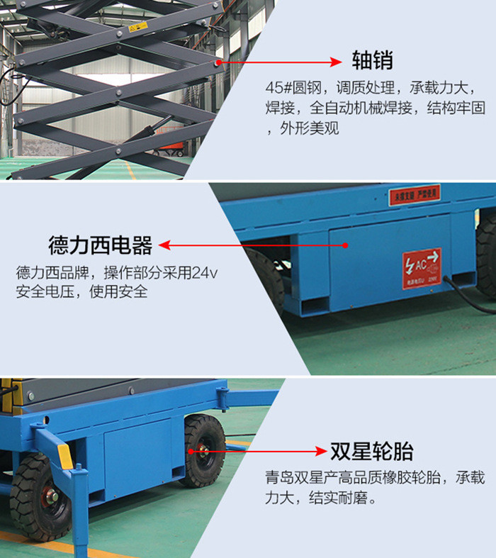 四:安全性高,采用上下雙控安全低壓操作按鈕,配備一鍵式緊急停止及意外失去電源的應急下降裝置,提高了設備的安全性。