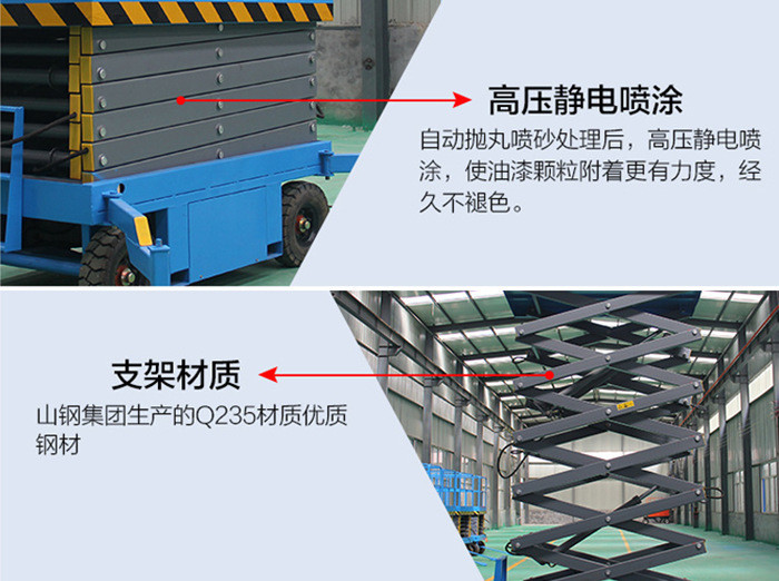 移動升降機根據(jù)需求可選為二相、三相、電瓶、柴油機為升降動力,特殊場所也可選用防爆電機,電器等。該升降機控制方式為電動上、下控制升降,手、電兩用或遙控器控制,在停電時仍可使用。該系列升降機具有移動靈活,升降平穩(wěn),載重量大,操作方便等特點,移動升降機廣泛用于工廠、糧庫、機場、加油站、機關、碼頭、野外電力、路燈維護及建筑裝修等各種行業(yè)。移動升降機可根據(jù)用戶使用要求設計制造。