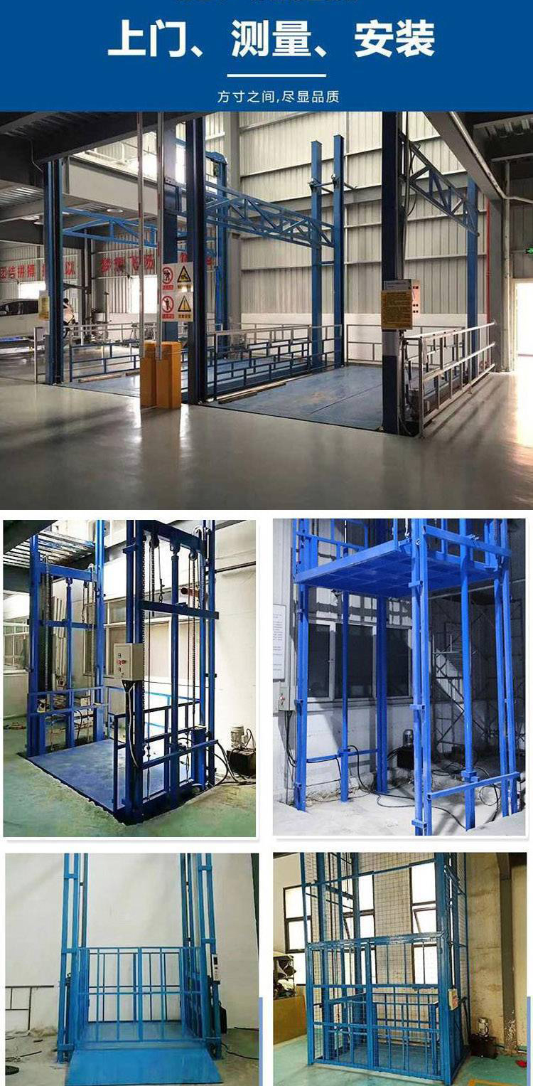 工廠貨梯主體結(jié)構(gòu)使用鋼材焊接而成,故而具有載重量大,強(qiáng)度高,耐磨損等突出優(yōu)點(diǎn);臺(tái)面采用高強(qiáng)度防滑花紋的鋼板,抗壓、耐磨、防滑,使貨物在運(yùn)輸過程中更穩(wěn)固;導(dǎo)軌采用H型鋼,其抗彎能力強(qiáng)、直線精度高,設(shè)備運(yùn)行更加安全平穩(wěn)。